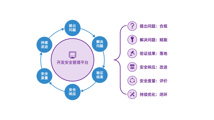 能够将系统的安全问题左移,预知系统可能出现的安全问题并指导辅助研发人员或安全人员进行安全问题的解决,还能够将安全问题解决的结果进行验证,实现安全需求的闭环管理。丰富的业务场景覆盖Web端、移动端(IOS、Android),是能够覆盖应用安全开发全生命周期的标准化、轻量化、简捷化的安全开发管理工具。